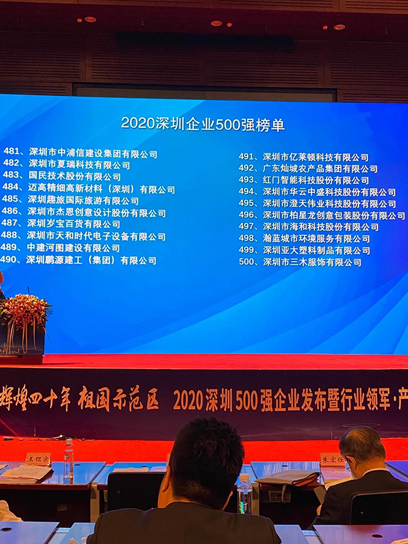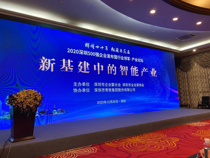 2020年10月 20日下午,由中国企业联合会、中国企业家协会指导、政府相关部门支持,深圳市企业联合会、深圳市企业家协会在深圳会展中心举办了“辉煌四十年、祖国示范区”2020 深圳 500 强企业发布暨行业领军产业论坛。