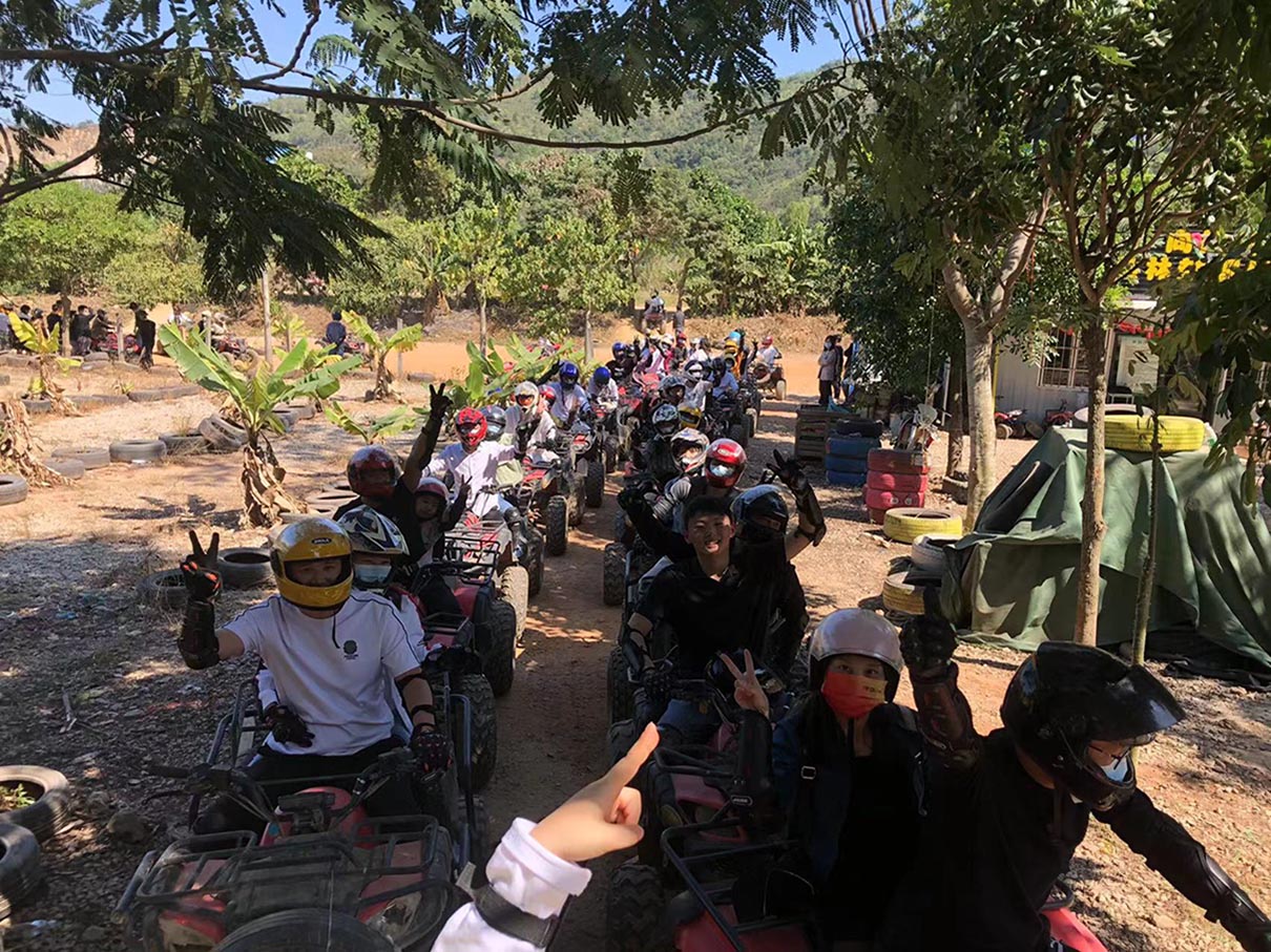巽寮湾第一站是越野车项目,刚到越野车基地时,大家目睹了其他团队2起翻车事故,还参与了其中一起事故的抬车救人行动,但丝毫没有影响勇于挑战的我们。