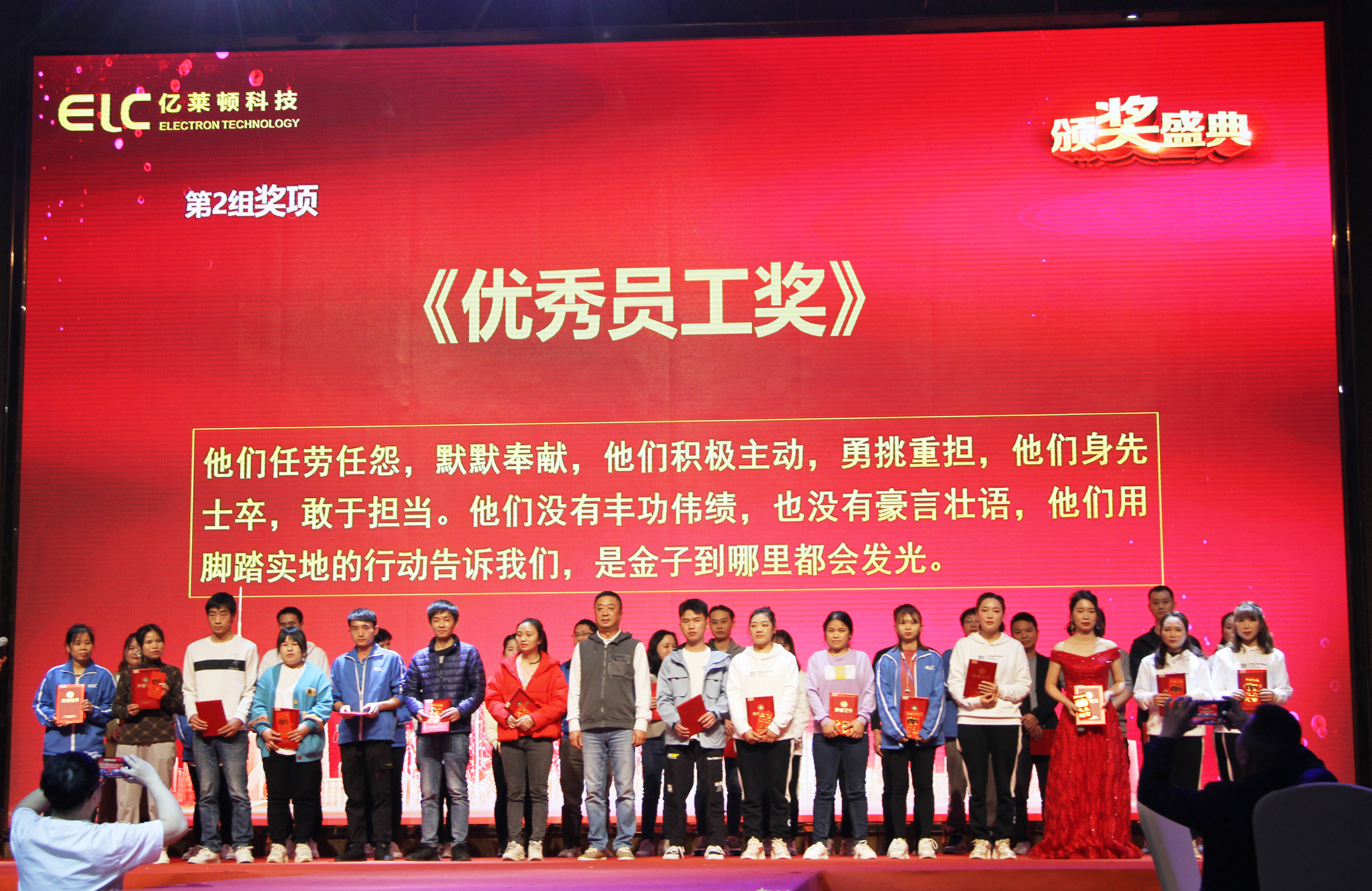 晚宴上,公司表彰了一批优秀新人、优秀员工、优秀团队。对他们取得的优异成绩表示感谢和肯定。同时,激发更多员工向优秀员工和团队看齐,赶超他们。