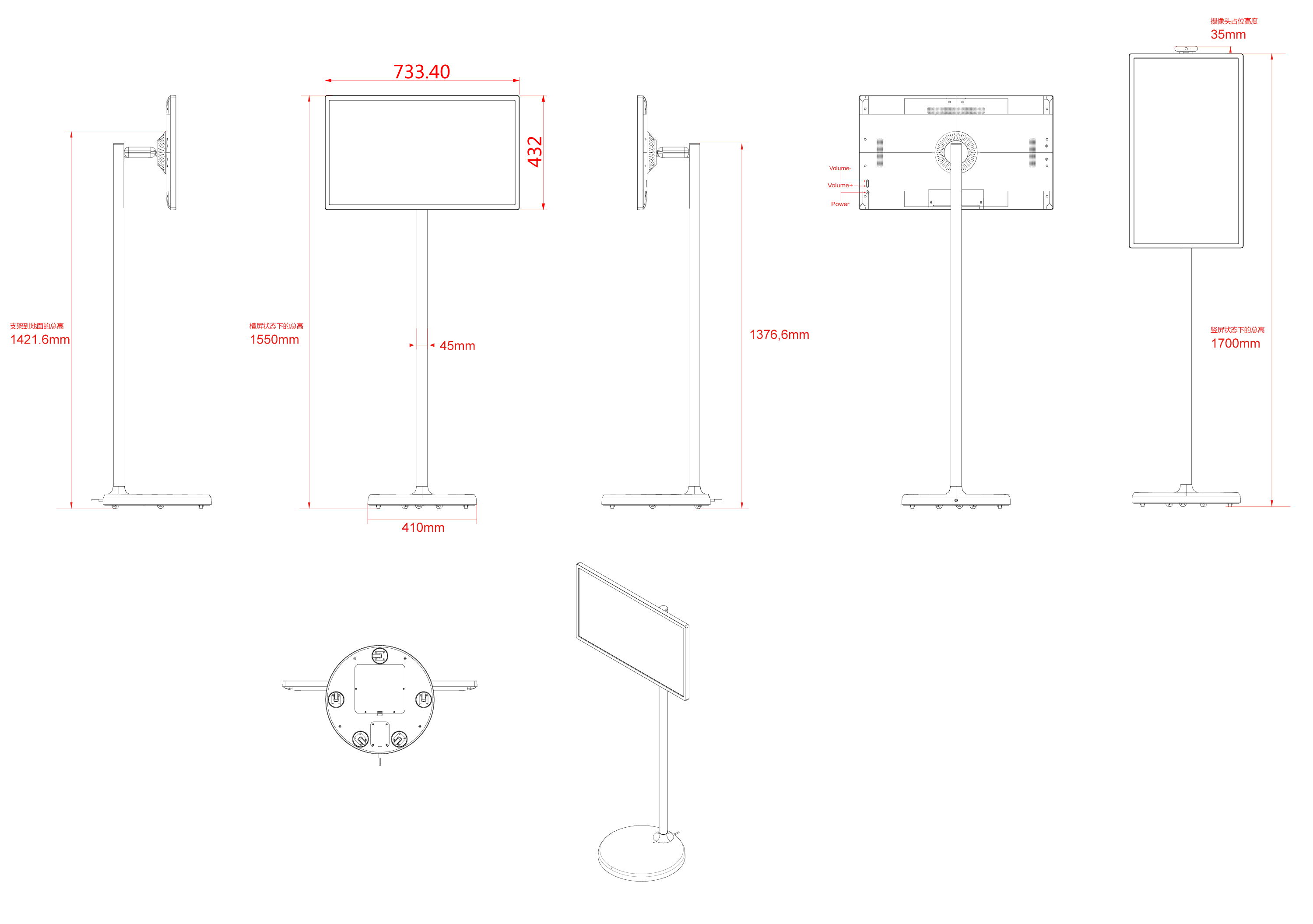 第二,可调节支架。这个支架高度是137.66cm,支持上下18cm无极调节。阻尼手感很好,一根手指就能轻轻松松往上抬。还可以左右偏转15°、前后倾斜20°。无论是坐着还是躺着,都能找到一个最佳追剧视角。最重要的是还可以顺时针旋转90°,瞬间由电视变成平板的既视感。
