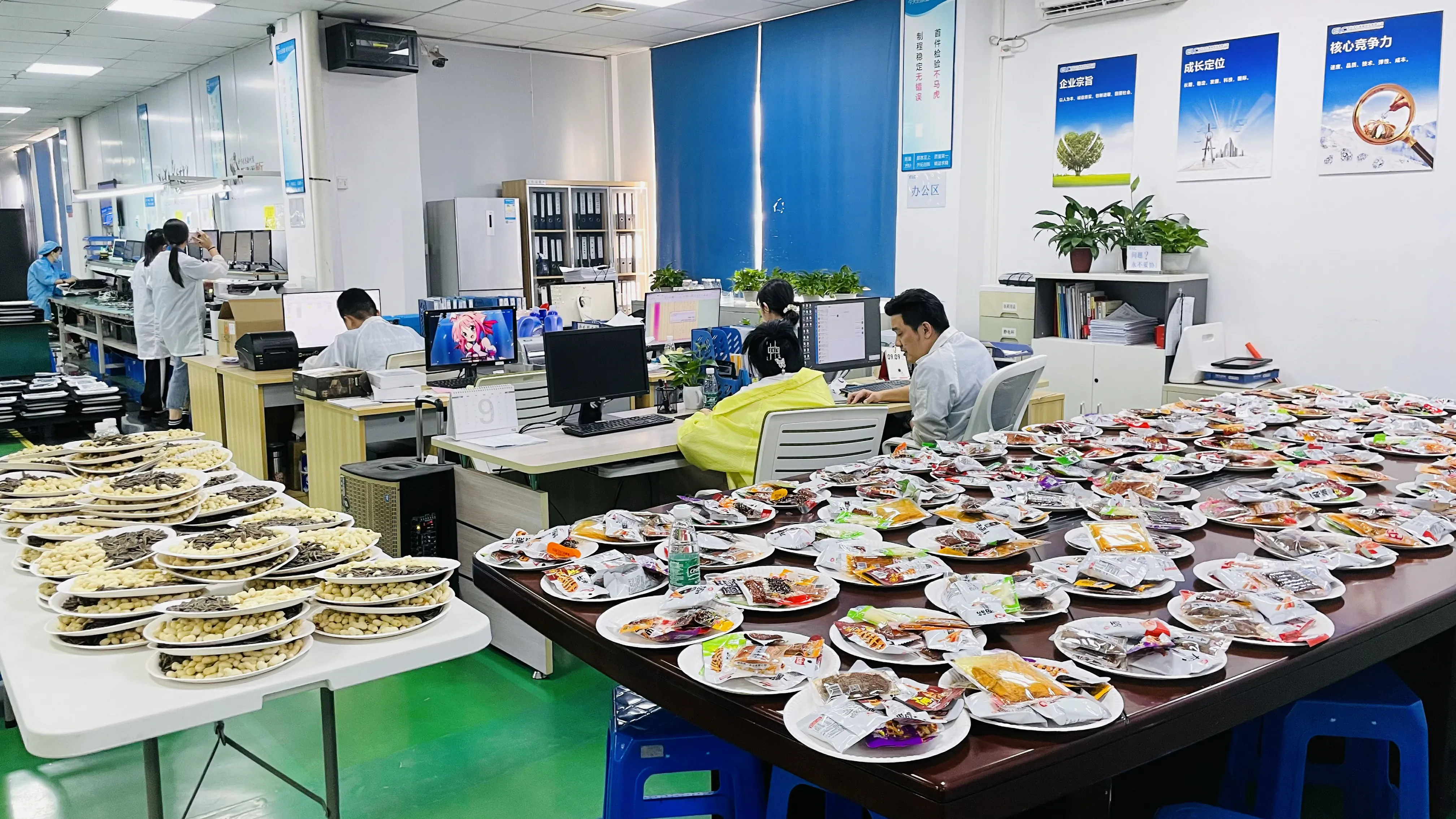 9月9日下午,车间的流水线还是像往常一样的繁忙,似乎看不出一点即将放假的前奏。车间的一角,已悄然摆上了琳琅满目的吃食。
