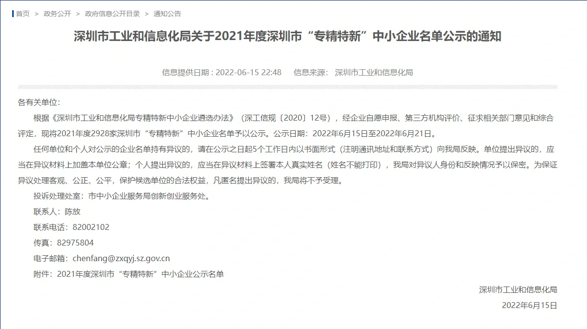截至2021年底,深圳市中小企业总数达241万家,其中2928家被遴选为"深圳市专精特新中小企业"并由深圳工信局予以公示。